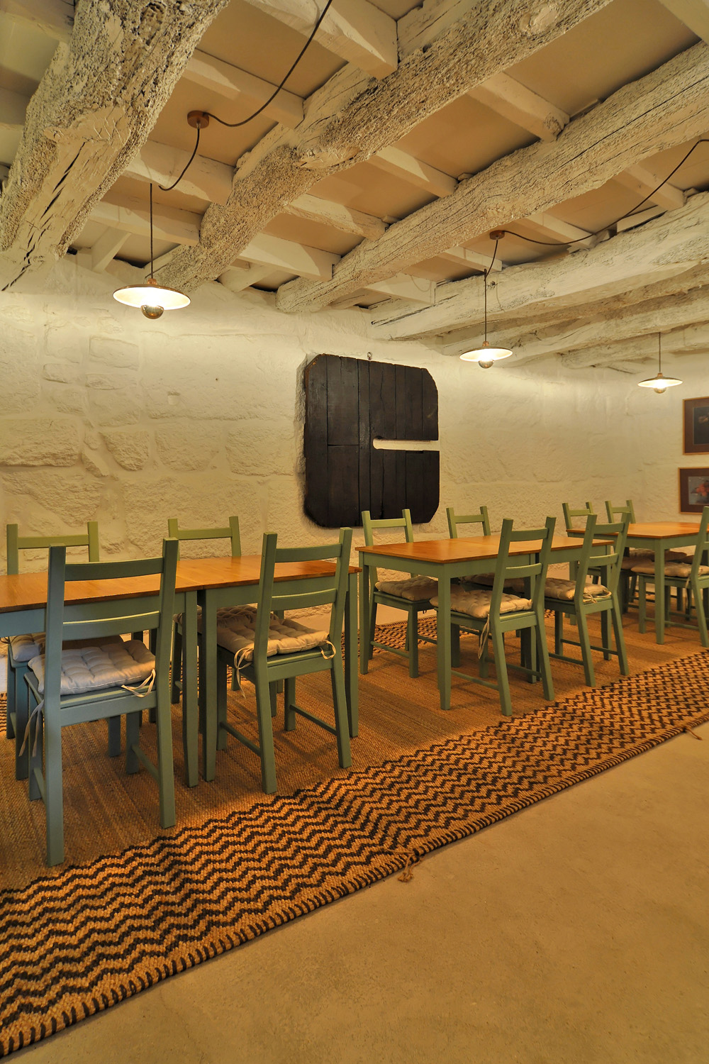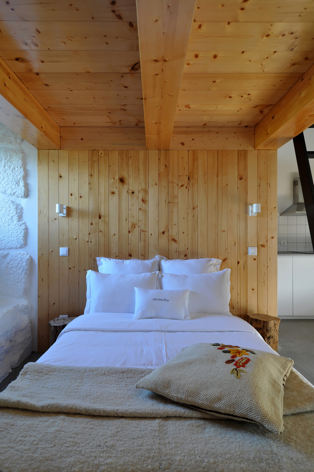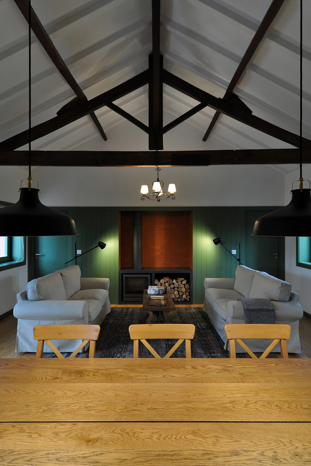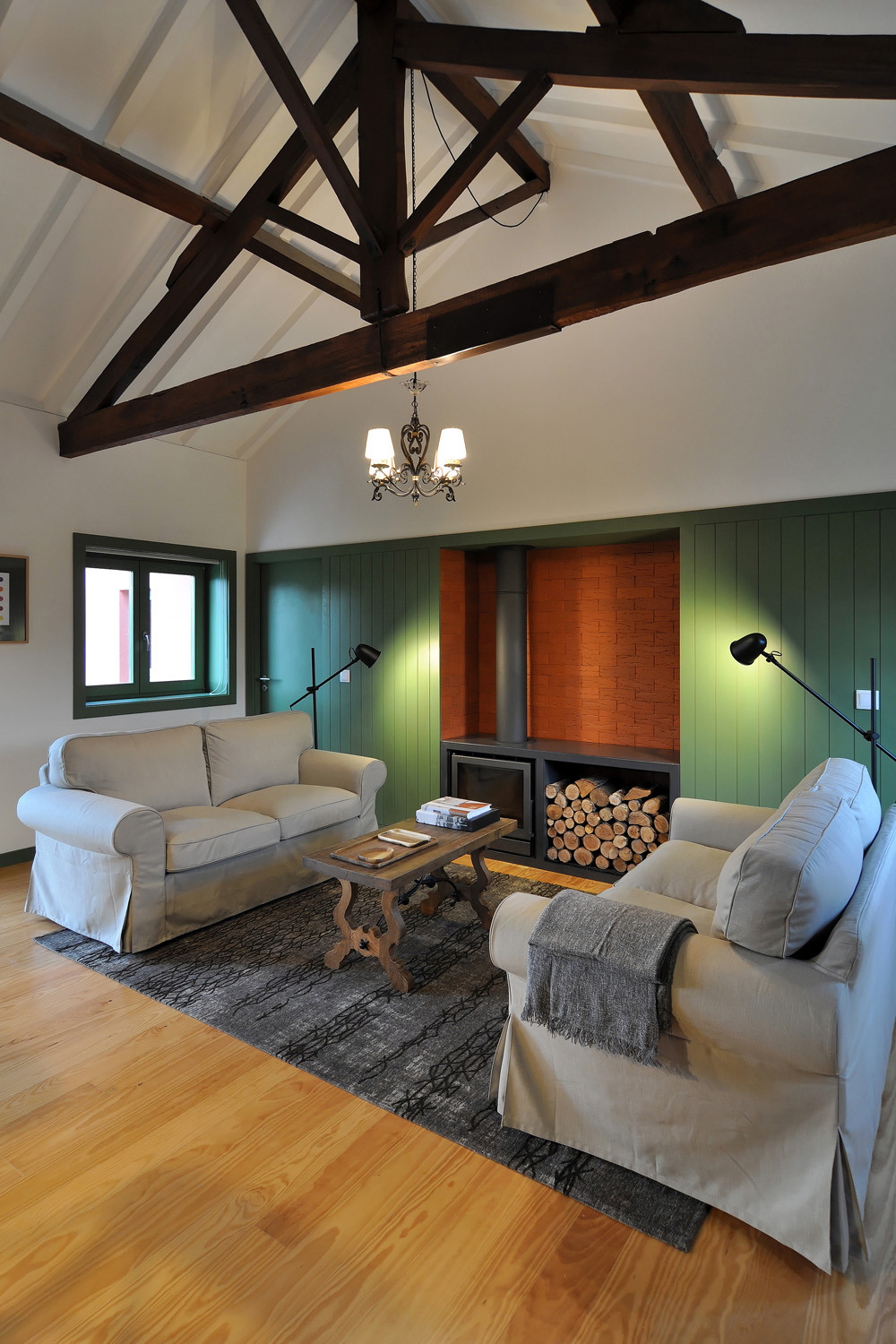 Intervention: When we visited the farm for the first time, we immediately apprehended the central terrace, with a triangular plan - around which the three buildings that make up the small agricultural nucleus gravitate -, as a privileged social space with a communitarian vocation, of circulation and distribution between the various areas of the property. This functional and representative core has at the same time an intimate character, its centrality being accentuated by a leafy fig tree which functions as a natural dome that tints the light and regulates the temperature, protecting the yard from the intense sun in the warmer months. The general intention of the architectural intervention was to maintain and emphasize the rural spirit already present in the built ensemble and its surroundings, eliminating the dissonant elements, from a stylistic and constructive point of view, that were added over time to the original constructions, preserving the characteristic solutions and seeking to ensure that the introduction of new elements did not detract from the overall image of the existing ones. The new program was organized by locating the service functions on the ground floor, taking advantage of its more direct relationship with the outdoor spaces, and the accommodation spaces on the upper floor, giving them greater privacy. In the treatment of the façades, it was decided to expose the granite stone apparatus whenever possible and an old pink pigment, evocative of the wild fruit culture and “brand image” of the owners’ agricultural production, was used, combining them with a nature inspired green tone on the new wooden frames. In the interiors special attention was paid to the enhancement of pre-existing elements, namely to the wooden structures of floors and roofs, to the ovens of the old kitchen and to the granite mill integrated in the new store/reception of the enterprise, with wood prevailing as the material of choice in the new elements introduced. Some elements of a more vernacular nature, already too deteriorated, were reinterpreted according to contemporary design and technique, with the intention of maintaining the spirit of the place and period of the original construction.