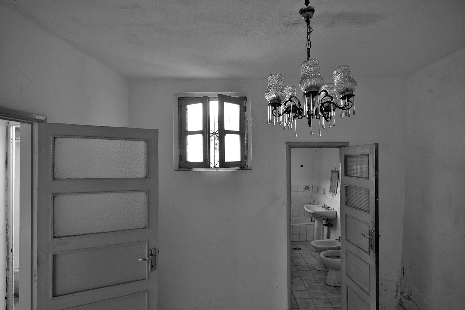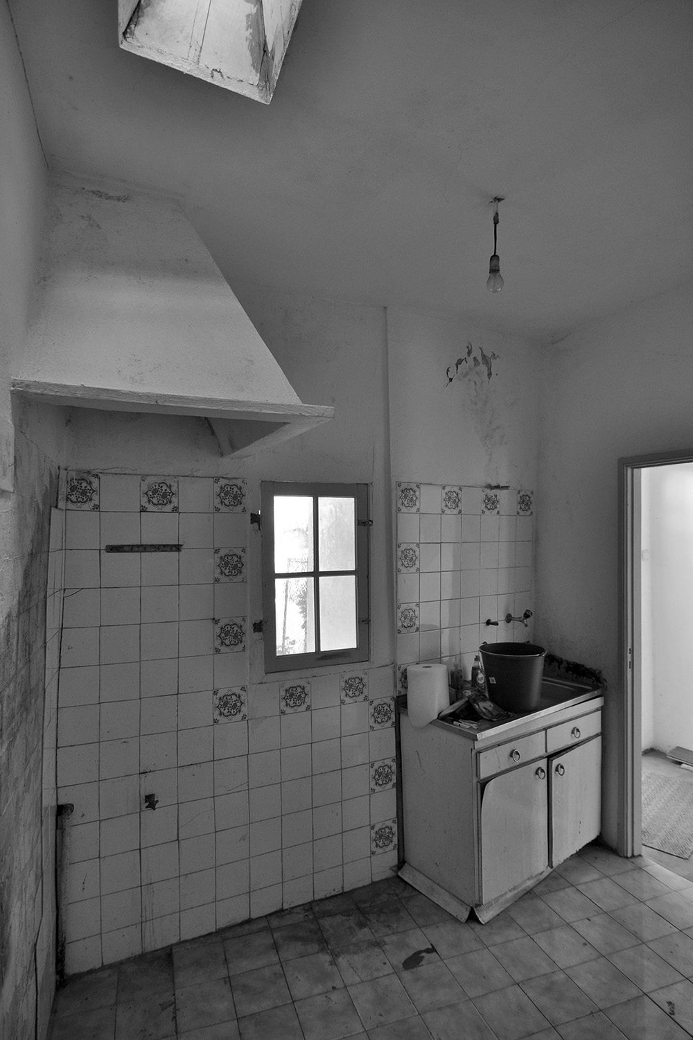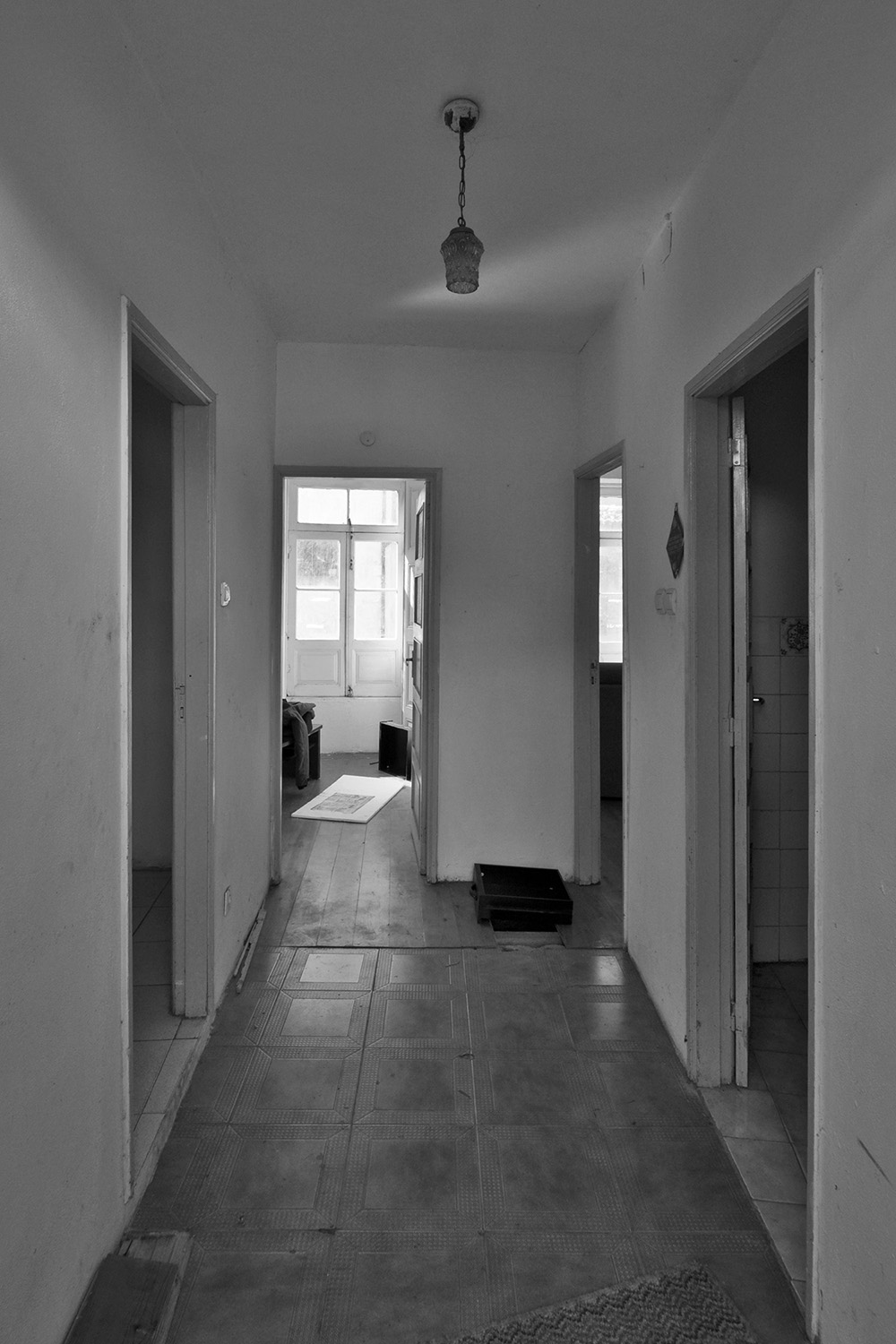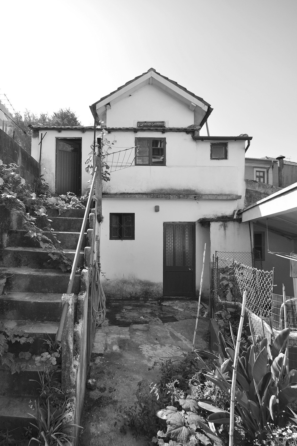 Following the clients’ intentions of simplicity, the material pallete is very restrained with white (walls, ceilings and built in furniture) and different tones of grey (granite on the main façade, self-leveling floors, kitchen and bathroom counters) being the most present tones in the overall atmosphere punctuated by coloured furniture and traditional elements (hand made tiles on the main façade, patterned ceramic tiles on the terraces and kitchens).