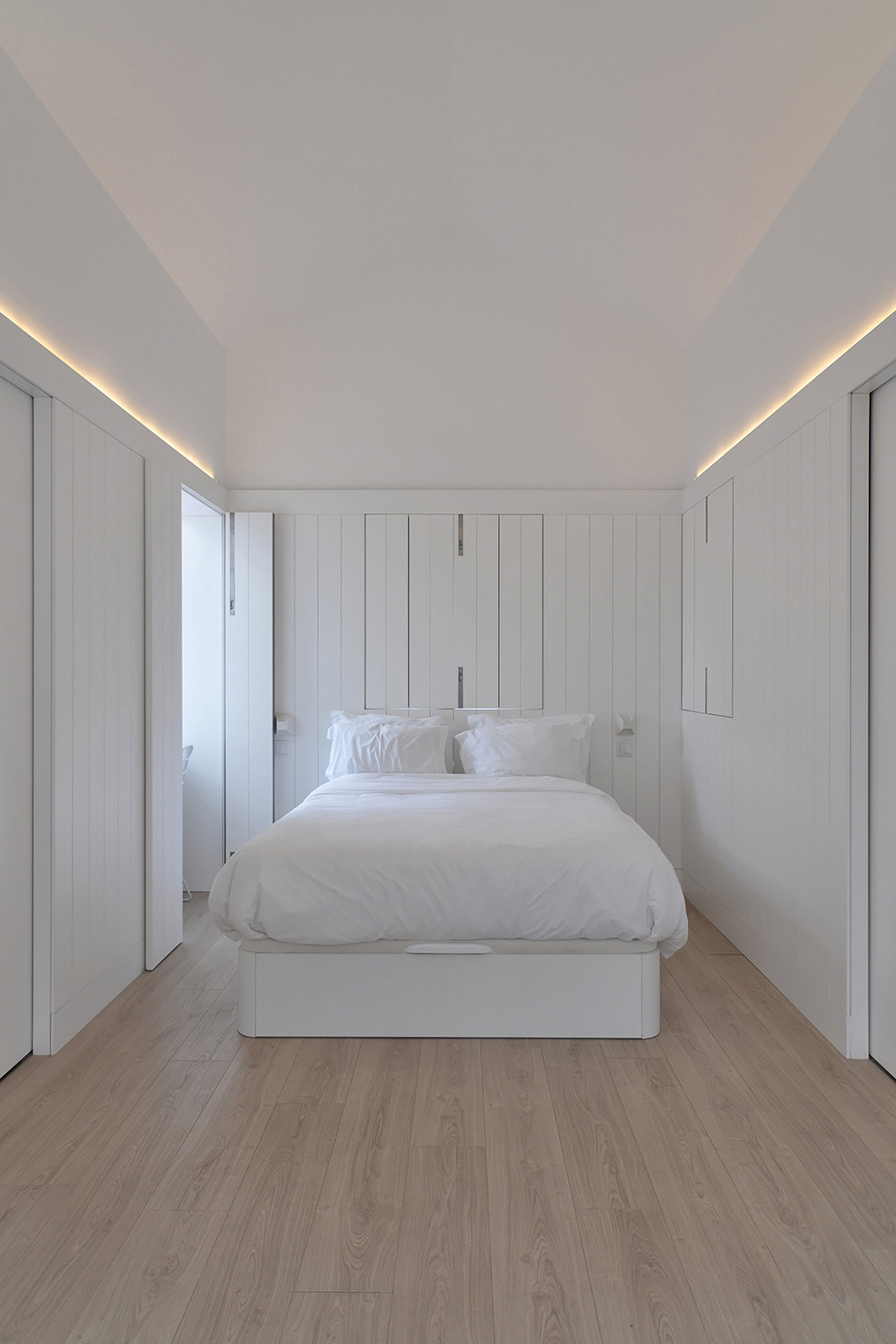 Intervention: After a careful survey and analysis of the existing building by a specialized engineering team it was concluded that the construction was not structurally sound so a whole new resistant structure had to be erected, just preserving three of the outer walls: the main façade and the two party walls. From this starting point the main concepts were to de-compartmentalize the spaces and use built-in furniture to maximize free space as much as possible.