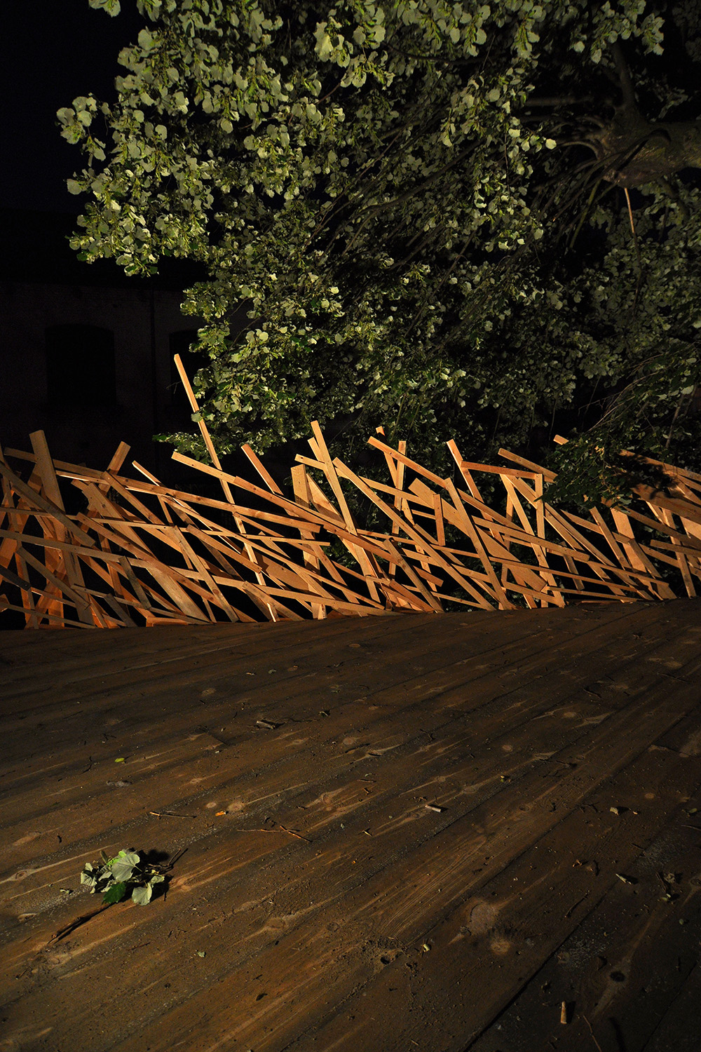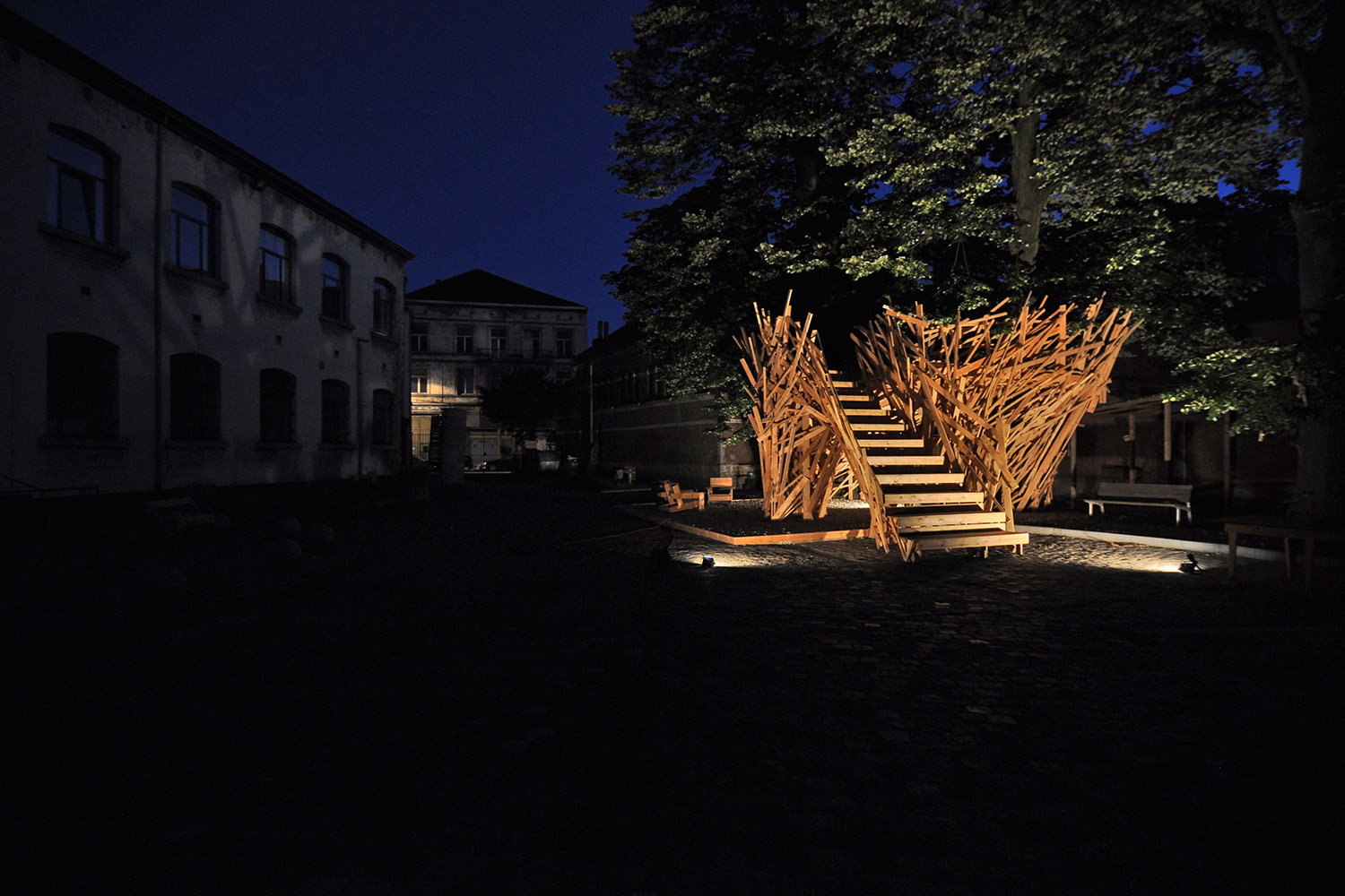 Description: Curo Hall functioned as the information center for Parckdesign 2012 festival in the Anderlecht neighbourhood in Brussels. Its outdoor space had been closed to the public for years and Raumlabor were invited to make a participatory intervention opening it up to the public during the festival.